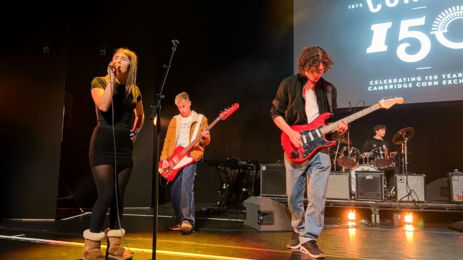 Music students responded with a performance in tribute to legendary appearances at the Corn Exchange by Freddie Mercury and David Bowie, presenting a powerful medley featuring We Will Rock You, Under Pressure and Bohemian Rhapsody with soaring guitar solos over strong drum and bass lines and vocal harmonies that truly packed a punch.